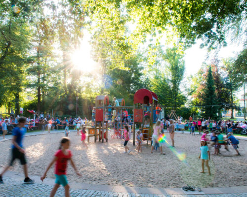 Der Taxispark in Dillingen an der Donau ist ein grüner Stadtpark mit Spielplatz, Liegewiesen und einem kleinen Wasser-Erlebnis für Familien.