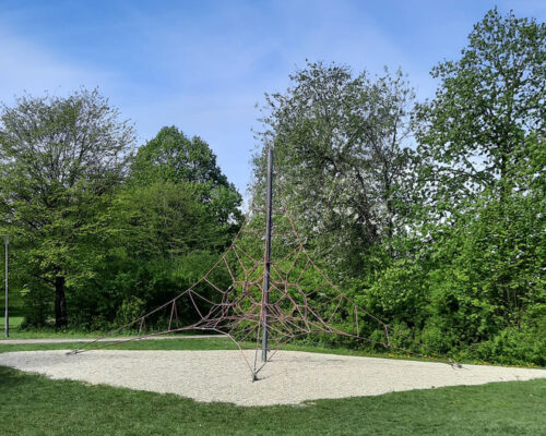 Doch der Spielplatz bietet noch weit mehr: Über drei verschiedene Brücken ist der Hauptturm mit weiteren spannenden Spielgeräten verbunden. Dazu gehören ein ausgiebiger Kletterbereich, eine Sandspiel-Installation sowie eine Motorikanlage. Für besonders abenteuerlustige Kinder gibt es zahlreiche weitere Herausforderungen.
